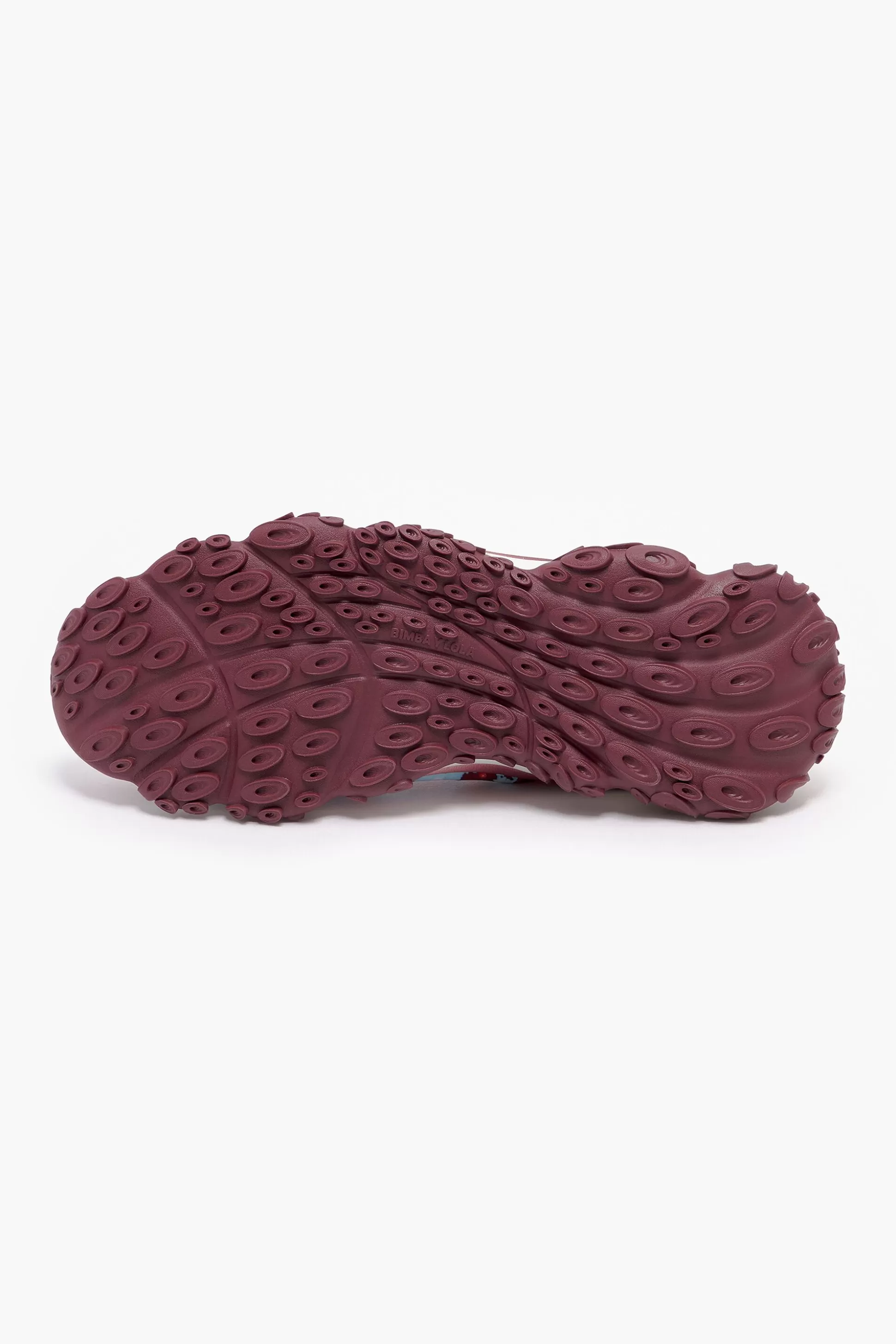 Sabrina Runner Com Print Flowers Full Em Cor Azul. Modelo Com Etiqueta Textil Na Lateral, Palmilha Com Logotipo E Piso Monocolor Personalizado. Sola Inspirada Nas Marcas Do Polvo, Numa Homenagem As Nossas Origens E As Suas Tradicoes. From Spain To The World.