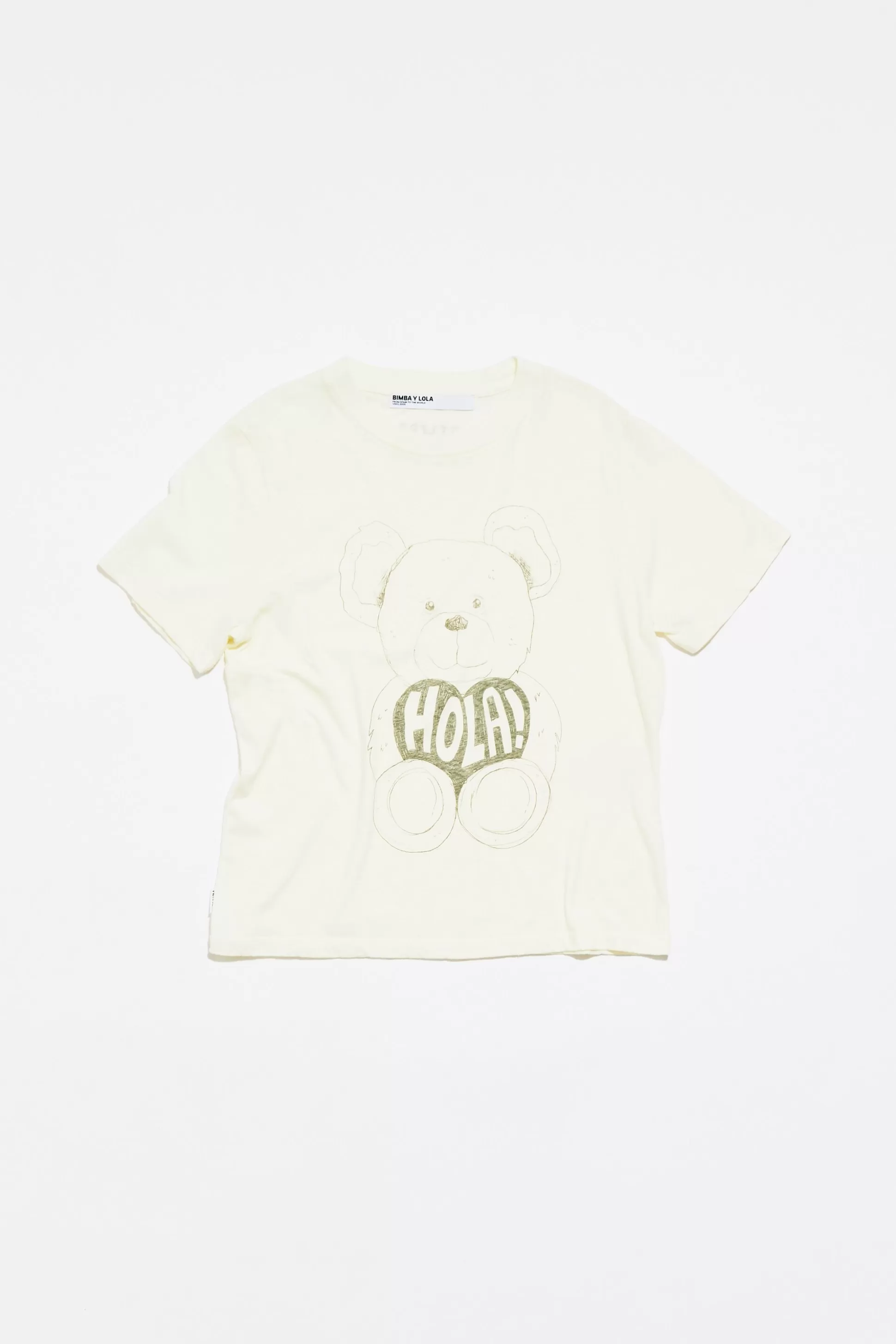 Fashion BIMBA Y LOLA T-Shirt Print Urso Panda Cru Vanilla